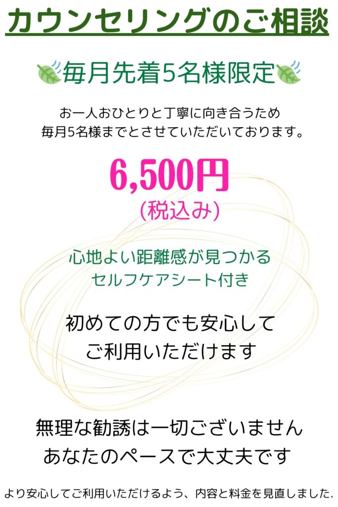 ・カウンセリングは医療行為ではありませんので、効果・効能を確約することはできません。